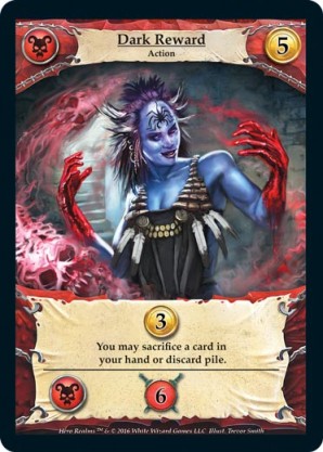 | Base Set | 1 | Dark Reward | {Gain 3 gold} You may sacrifice a card in your hand or discard pile. {Necros Ally}: {Gain 6 combat} | Action | Necros | 5 | Market Deck | Trevor Smith | ||||