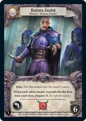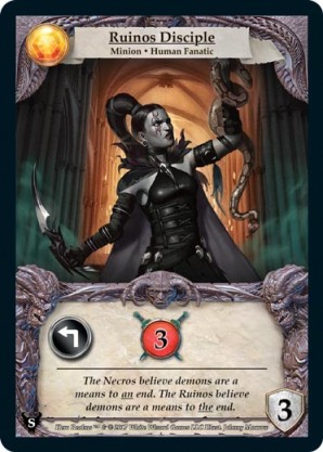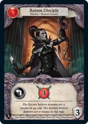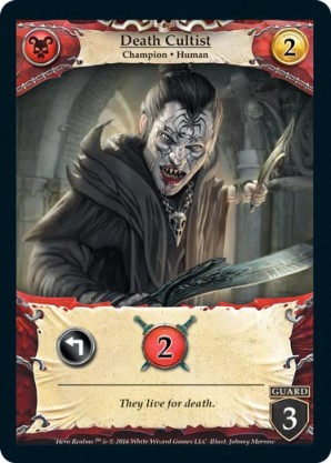 | Base Set | 2 | Death Cultist | {Expend}: {Gain 2 combat} | Champion ◆ Human | Necros | 2 | 3 Guard | Market Deck | Johnny Morrow | |||