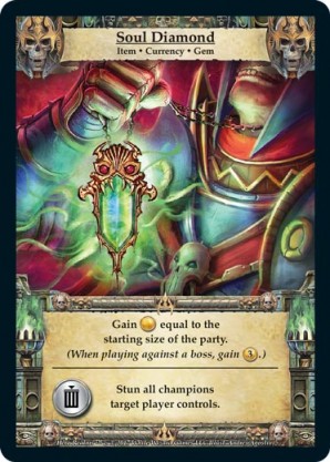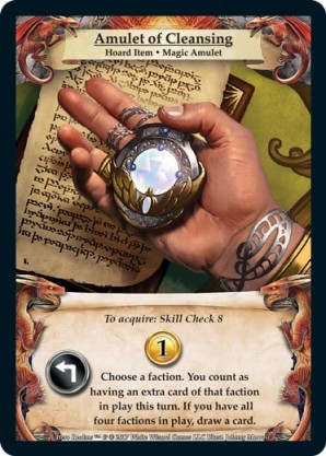| 1st Kickstarter Promo Pack | 1 | Starsoul Amulet | {Gain 1 gold} Gain {2 combat} for each champion you have in play. Draw a card. When playing with this treasure card, shuffle it into your personal deck at the beginning of the game. | Item ◆ Magic Jewelry | Cleric Personal Deck | Johnny Morrow | ||||||