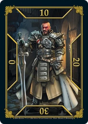 | 1st Kickstarter Promo Pack, The Lost Village | 1 | Tibus, Guild Lord | {Imperial Ally}: Tibus gains {5 health}. {Guild Ally}: Tibus keeps the revealed card, and reveals another. {Necros Ally}: Sacrifice every card in the market. Tibus gains {5 combat}. {Wild Ally}: If you have any champions, Tibus stuns one. If not, discard two cards. | Solo Challenge | Health 40 | Challenge | Alex Hurtado | |||||