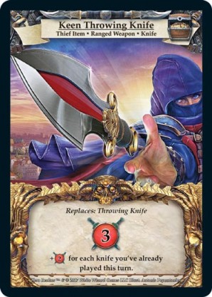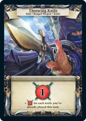 | Base Set | 4 | Dagger | {Gain 1 combat} | Item ◆ Melee Weapon ◆ Dagger | Personal Deck | Dylan Safford | ||||||