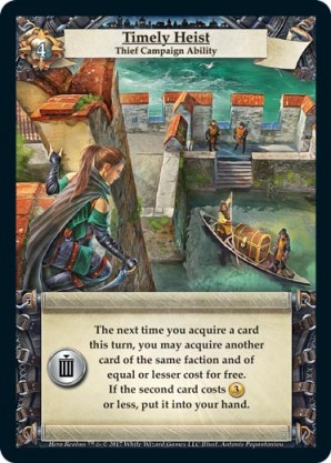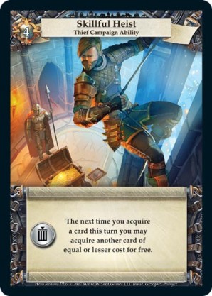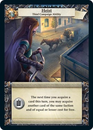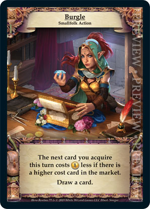 | Ancestry | 1 | Burgle | The next card you acquire this turn costs {1 gold} less if there is a higher cost card in the market. Draw a card. | Smallfolk Action | Personal Deck | Siregar | ||||||