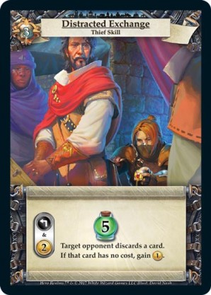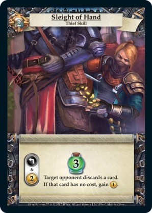 | Base Set | 1 | Deception | {Gain 2 gold} Draw a card. {Guild Ally}: Put the next card you acquire this turn into your hand. | Action | Guild | 5 | Market Deck | Souveraine | ||||