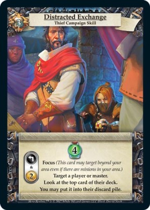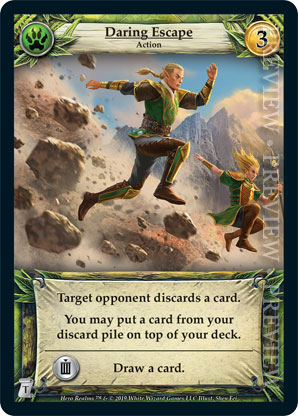 | Journeys: Travelers | 2 | Daring Escape | Target opponent discards a card. You may put a card from your discard pile on top of your deck. {Sacrifice}: Draw a card. | Action | Wild | 3 | Market Deck | Shen Fei | ||||
