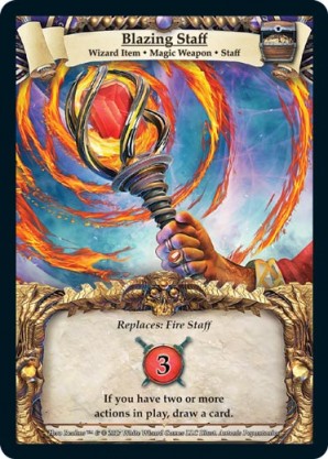 | Journeys: Discovery | 1 | Staff of Radiance | Stun target champion. or Draw a card. When you acquire this card, you may put it into your hand. | Artifact Item ◆ Weapon ◆ Staff | 3 | Artifact Deck | Ksenia Kozhevnikova | |||||