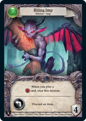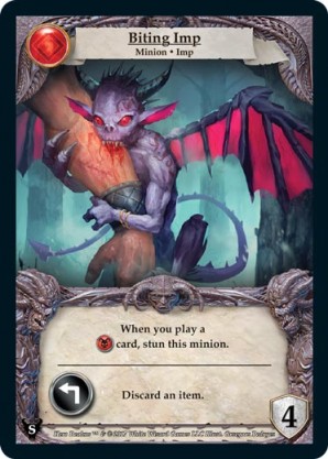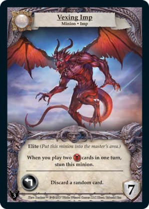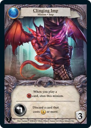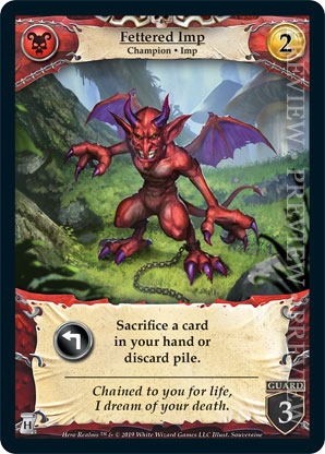 | Journeys: Hunters | 2 | Fettered Imp | {Expend}: Sacrifice a card in your hand or discard pile. | Champion ◆ Imp | Necros | 2 | 3 Guard | Market Deck | Souveraine | |||