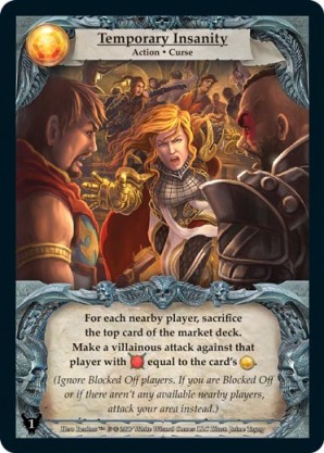 | Base Set | 2 | Intimidation | {Gain 5 combat} {Guild Ally}: {Gain 2 gold} | Action ◆ Rogue | Guild | 2 | Market Deck | Johnny Morrow | ||||