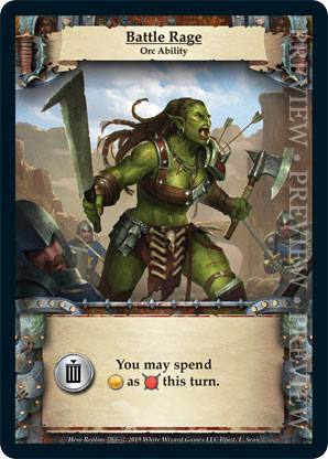 | Ancestry | 1 | Battle Rage | {Sacrifice}: You may spend {Gold} as {Combat} this turn. | Orc Ability | Personal Deck | L. Sean | ||||||