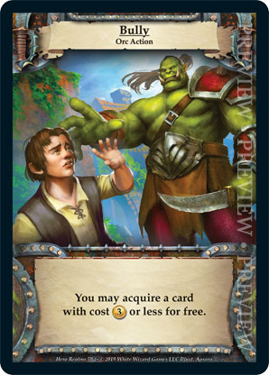 | Ancestry | 1 | Bully | You may acquire a card with cost {3 gold} or less for free. | Orc Action | Personal Deck | Apsara | ||||||