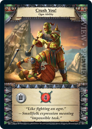 | Ancestry | 1 | Crush You! | {Sacrifice}: {Gain 4 combat} | Ogre Ability | Personal Deck | Vaggelis Manousakas | ||||||