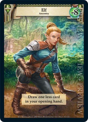 | Ancestry | 1 | Elf | Draw one less card in your opening hand. | Ancestry | Health -8 | Avatar | Shen Fei | |||||