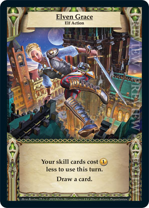 | Ancestry | 1 | Elven Grace | Your skill cards cost {1 gold} less to use this turn. Draw a card. | Elf Action | Personal Deck | Antonis Papantoniou | ||||||
