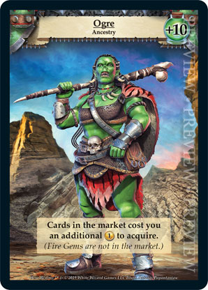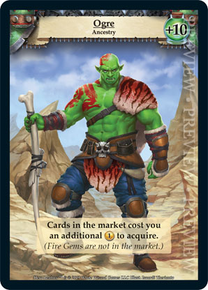 | Ancestry | 1 | Ogre | Cards in the market cost you an additional {1 gold} to acquire. (Fire Gems are not in the market.) | Ancestry | Health +10 | Avatar | Isuardi Therianto | |||||