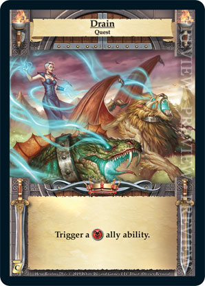 | Journeys: Conquest | 1 | Drain | Trigger a {Necros} ally ability. | Quest | Quest Deck | Olivier Bernard | ||||||