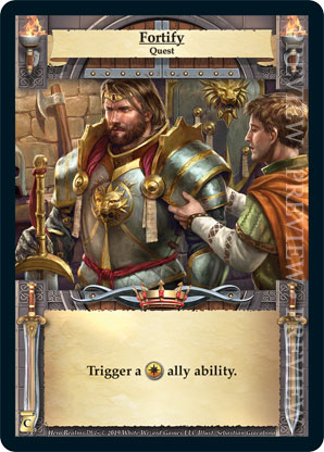 | Journeys: Conquest | 1 | Fortify | Trigger a {Imperial} ally ability. | Quest | Quest Deck | Sebastian Giacobino | ||||||