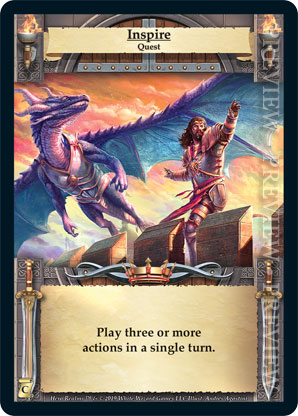 | Journeys: Conquest | 1 | Inspire | Play three or more actions in a single turn. | Quest | Quest Deck | Andrés Agostini | ||||||