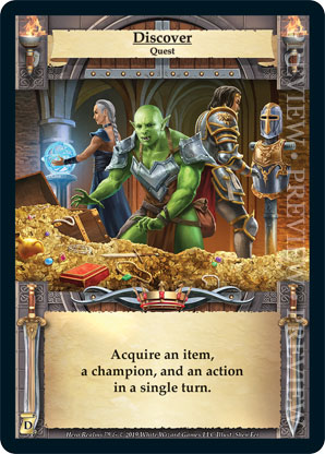 | Journeys: Discovery | 1 | Discover | Acquire an item, a champion, and an action in a single turn. | Quest | Quest Deck | Shen Fei | ||||||