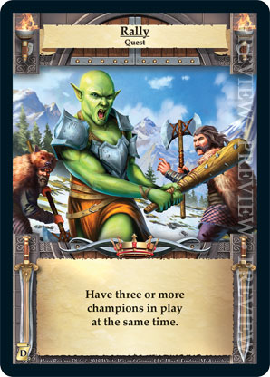 | Journeys: Discovery | 1 | Rally | Have three or more champions in play at the same time. | Quest | Quest Deck | Findara McAvinchey | ||||||
