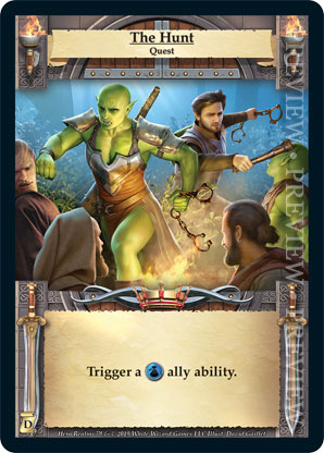 | Journeys: Discovery | 1 | The Hunt | Trigger a {Guild} ally ability. | Quest | Quest Deck | David Gaillet | ||||||