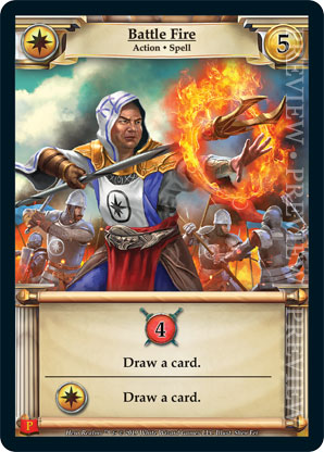 | Journeys Kickstarter Promo Pack | 1 | Battle Fire | {Gain 4 combat} Draw a card. {Imperial Ally}: Draw a card. | Action ◆ Spell | Imperial | 5 | Market Deck | Shen Fei | ||||