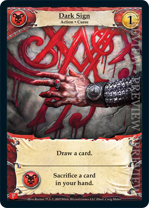 | Journeys Kickstarter Promo Pack | 2 | Dark Sign | Draw a card. {Necros Ally}: Sacrifice a card in your hand. | Action ◆ Curse | Necros | 1 | Market Deck | Craig Maher | ||||