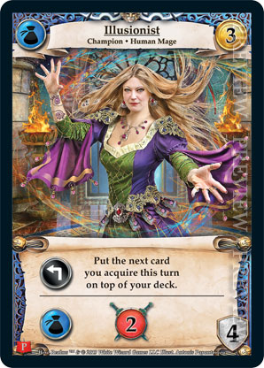 | Journeys Kickstarter Promo Pack | 2 | Illusionist | {Expend}: Put the next card you acquire this turn on top of your deck. {Guild Ally}: {Gain 2 combat} | Champion ◆ Human Mage | Guild | 4 | Market Deck | Antonis Papantoniou | ||||